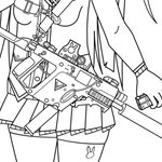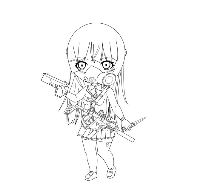 #皆さん線画と塗った後を見せてください 月ノ美兎委員長しゅき🐰 委員長銃好きそうだなぁ~と考えて描いてた ベクター君が色々大変やった🥺 委員長にとって、銃は家具。
