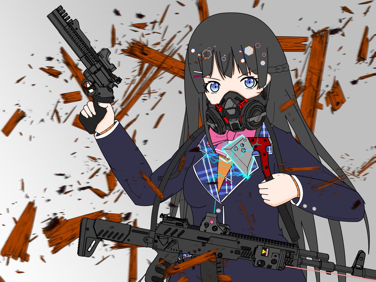 前から描きたかった月ノ美兎委員長! 委員長、サバゲーレポ楽しそうにするわ、 ゲーム実況では容赦なく撃ちまくるしで銃好きそうなイメージあったんだよなぁ… だから家具企画では銃描いたんだけど、飾ってくれて嬉しかったし、完全に俺の中で銃好きなイメージが定着してしまった #みとあーと