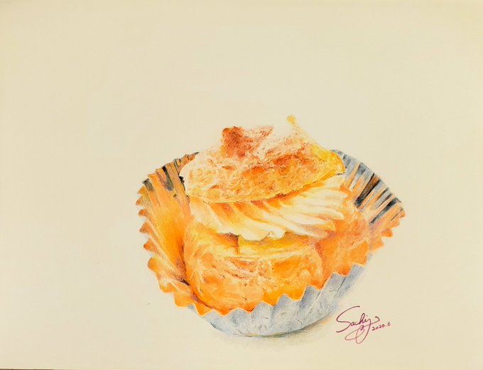 梶原誠先生の ONLINE ARTSCHOOLで描きました。毎月第3土曜日と、平日予約制マンツーマン講座があります。世界堂新宿本店6Fアートカルチャーの教室🎨もコロナ対策万全で再開です。#シュークリーム #sweets #梶原誠先生 #色鉛筆 #coloredpencil #online #世界堂 #世界堂アートカルチャー