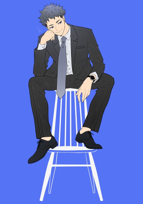 7 48 #短髪男子版深夜の真剣お絵描き60分一本勝負 お題:スーツ・椅子 スーツはいいぞ…!!!! 20/10/18 23:21