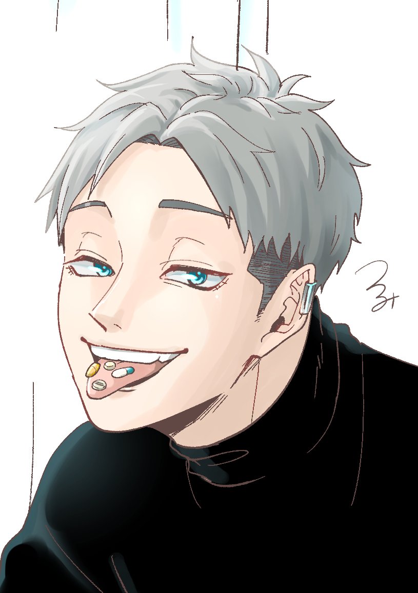 4 18 #短髪男子版深夜の真剣お絵描き60分一本勝負 お題「サプリメント」「ハイネック」 病的な雰囲気の子も嫌いじゃないと気づかされました…😊 21/01/17 23:01
