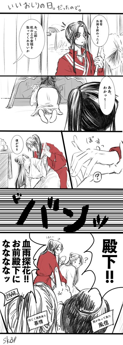 138 1003 描いてる内に過ぎてしまったけど、昨日いいおしりの日だったので。 #天官賜福 #花怜 #TGCF 21/11/05 04:27