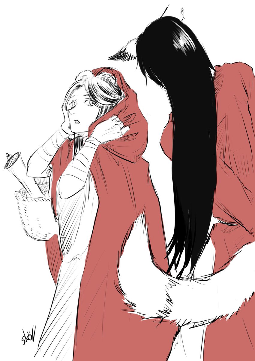裏で狼片付けて道案内してくれるキツネと赤ずきん花怜とか妄想してたとっさの殴り書き落書き。 たぶん何番煎じなネタかと思うけど。 #TGCF
