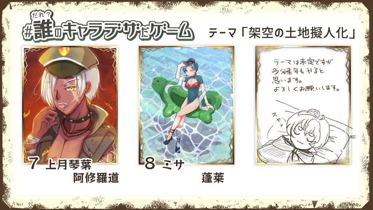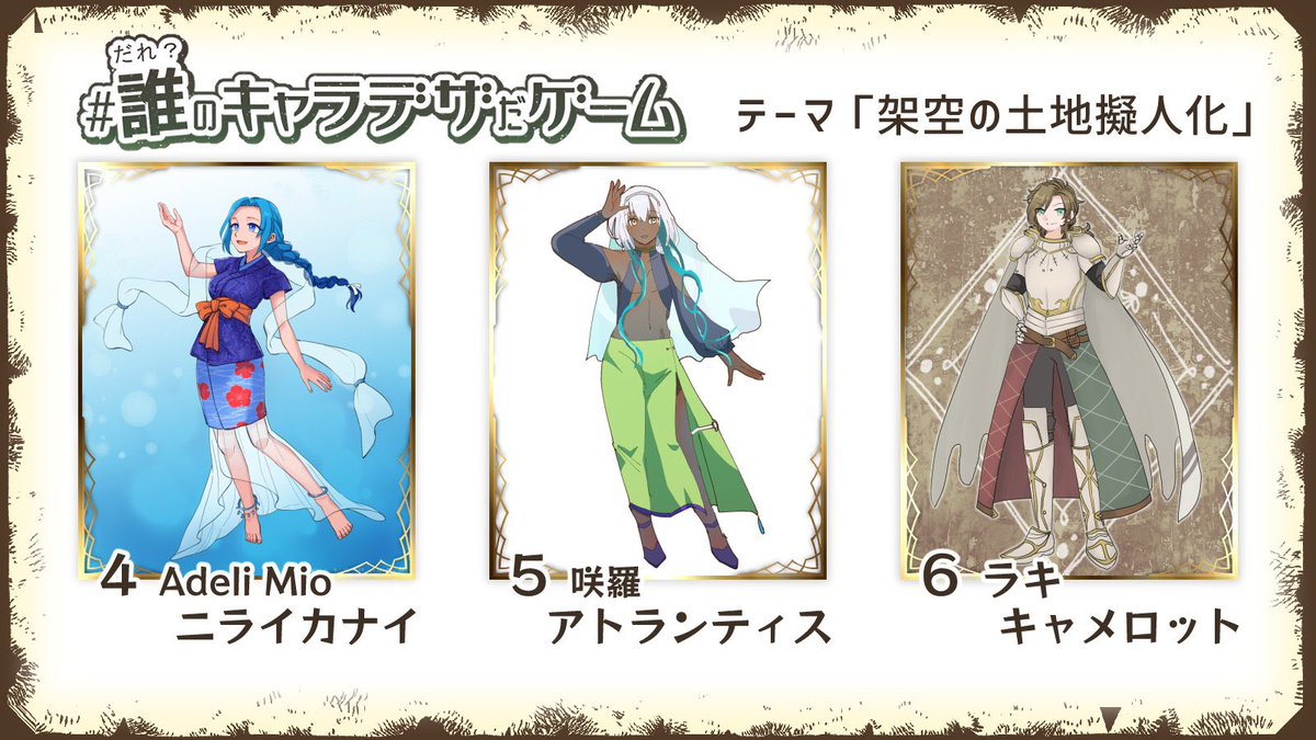 #誰のキャラデザだゲーム ミサさん主催の誰デザゲームに参加させて頂きました!架空の土地擬人化で5番のアトランティスを描かせていただきました! 私がキャラデザした子はどの子でしょうか!リプツリーのアンケート投票をお願いします🤲(〜27日まで)