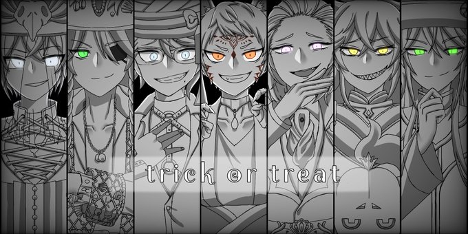 2 29 #ツイステハロウィーン #ツイステファンアート 🌹🦁🐙🦦 trick or treat 👑💀🐲 20/10/31 21:07