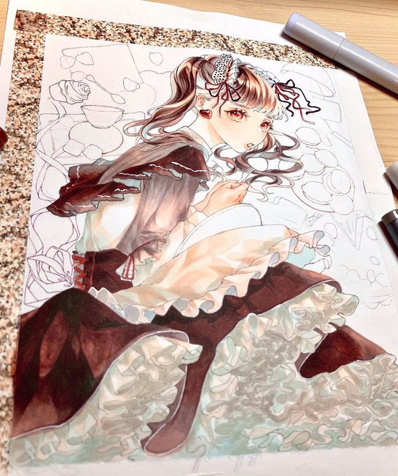 #2021年年末に今年まだ出会ってない素敵な作品に出会うタグ #2021年自分が選ぶ今年の4枚 タグの併用失礼します💦 女の子ばっかり描いて、コピックが楽しい1年でした! 沢山勉強できた☺️💐