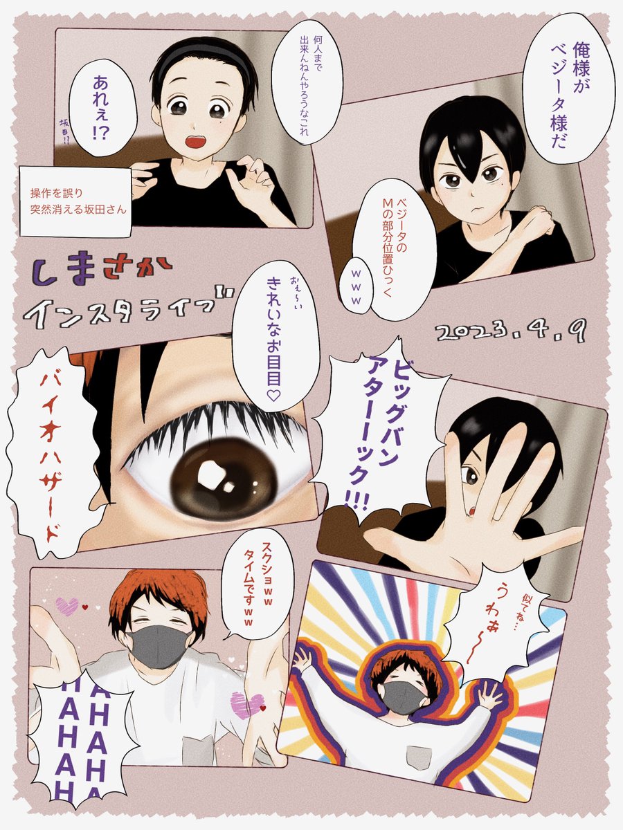 しまさかのインスタライブがあまりにも幸せ空間だった (この画力でも伝わってくれ頼む) (途中から見たので最初のほうはわかりません) #しまーと #坂田です