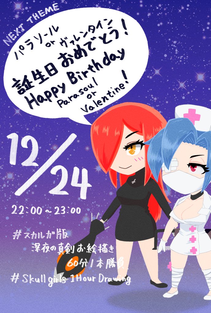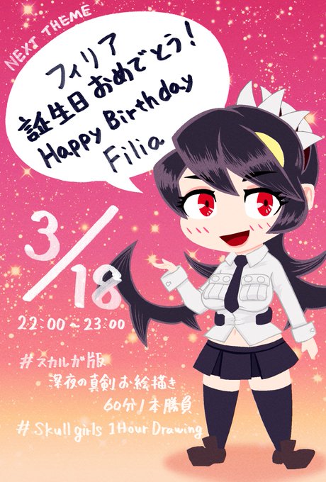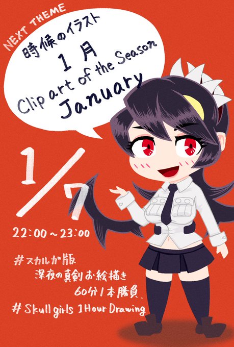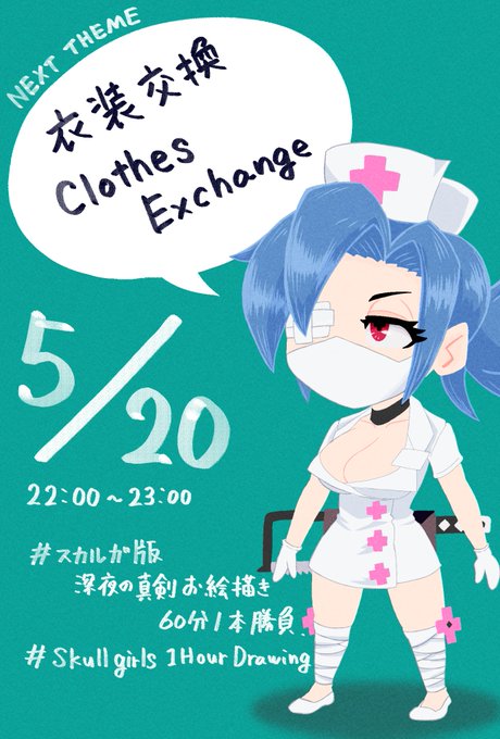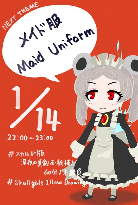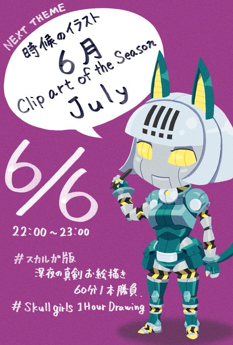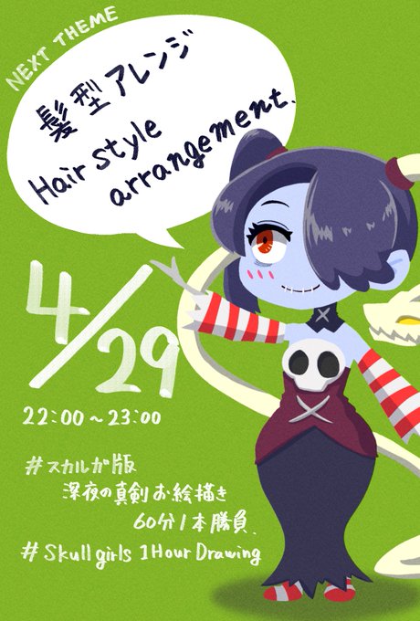 次回のテーマです。 Next theme. #スカルガ版深夜の真剣お絵描き60分一本勝負 #Skullgirls1HourDrawing お題を募集しています。 We are looking for themes.