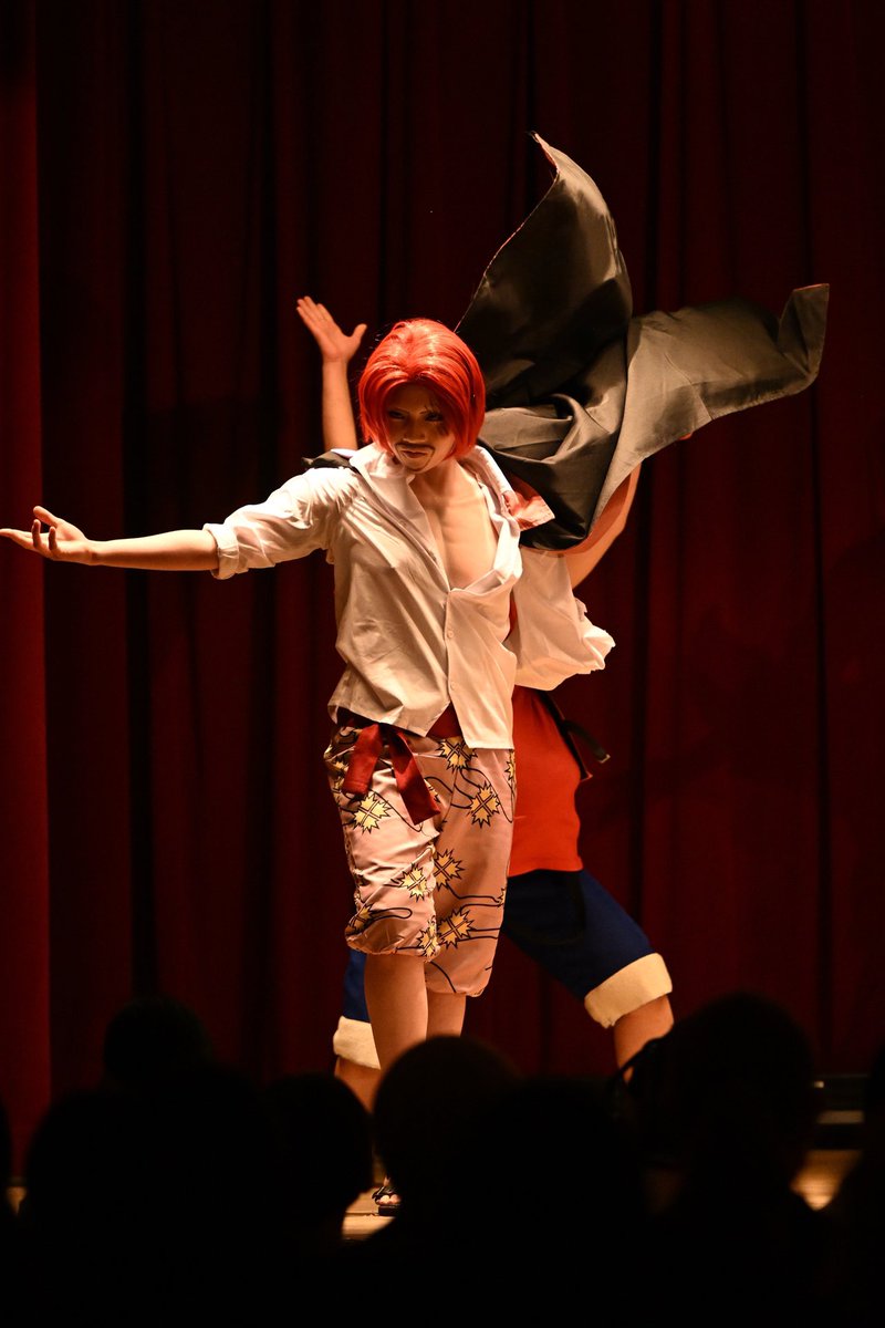 cosplay op🏴☠️👒🍶 ⚠︎キャラ崩壊 おどつなステージ中で👒にイジられるシャンくす🍶ww 4枚目「わーい!」「ん?」って感じで好きだな✨ 楽しいステージをありがとうございました!! 📸@marine223_Photo 様 #おどつなvol32 #ふぁんまれ