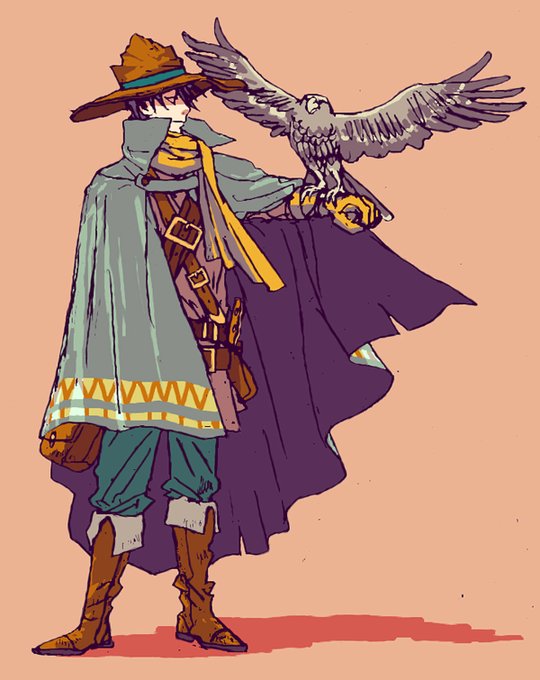 74 656 リクエスト絵 スナフキンのようなかっこいい旅人 スナフキン要素とか、かっこいいかどうかとかは微妙になってしまいましたが。鷹匠っぽく。 22/09/26 14:58