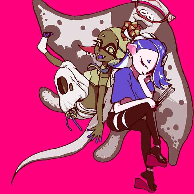 リクエスト絵 スプラトゥーンの、すりみ連合(ウツホ、マンタロー、フウカ)さん達 マンタローさんの尻尾の先がこれで合っているのかどうか