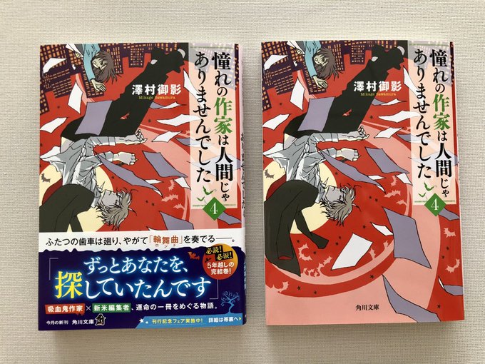 角川文庫『憧れの作家は人間じゃありませんでした4』(澤村御影氏著)のカバーイラストを描きました。前巻から5年、待望の完結巻です!久しぶりに御崎先生とあさひを描くことができてすごく嬉しかったです!シリーズ通してぜひ読んで頂きたいです