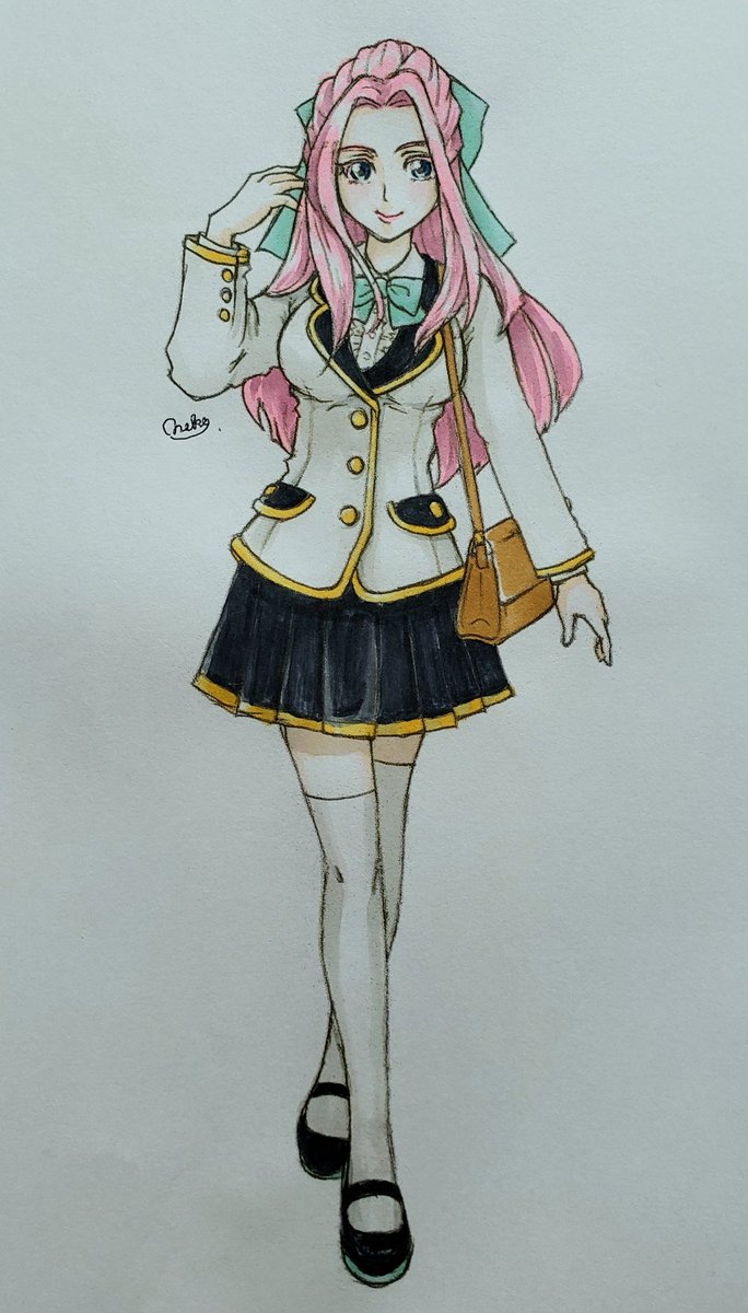 シバ様塗り終わりましたー!もしシバ様が女子高生だったら?というテーマで描いてみました。勉強する気が全く見えない極小ポシェットに当然禁止のヒールパンプス履いて通ってそう。(でも成績良いから誰も文句言えない)好き! #メギドの日 #メギド72イラスト #メギド72 #絵描きさんと繋がりたい