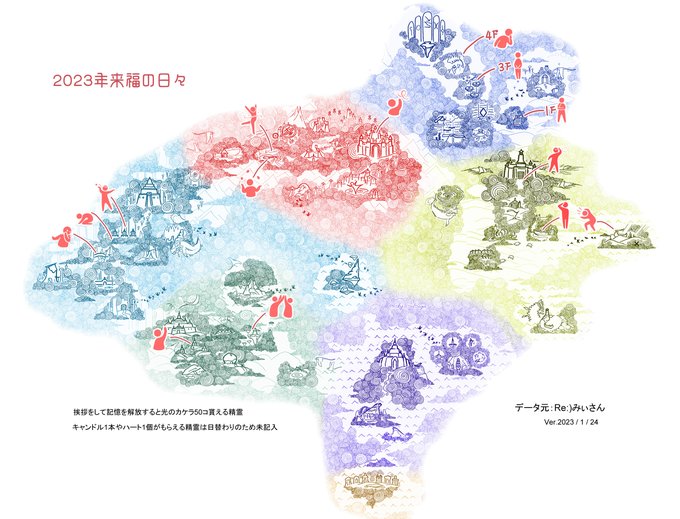 🥮2023年 来福の日々のイベントで記憶を解放すると「光のかけら50コ」獲得できる精霊のざっくり地図です。 キャンドル1本・ハート1個もらえる精霊も存在します。 しかし日替わりで変わるみたいで地図に描くのは断念しました。 #thatskygame #sky星を紡ぐ子どもたち #sky地図 #来福の日々