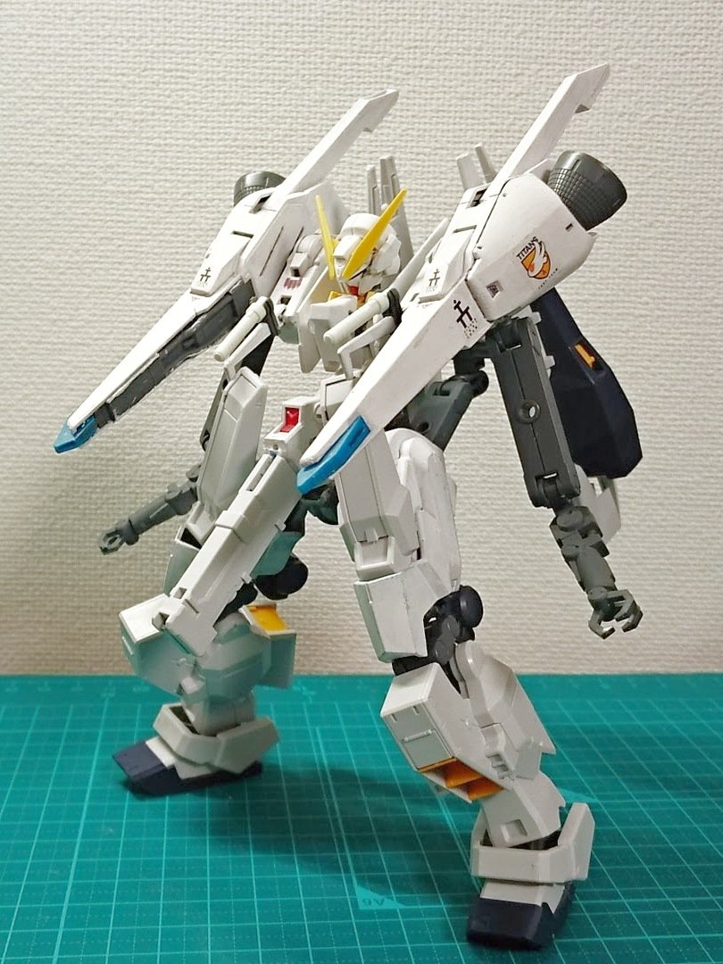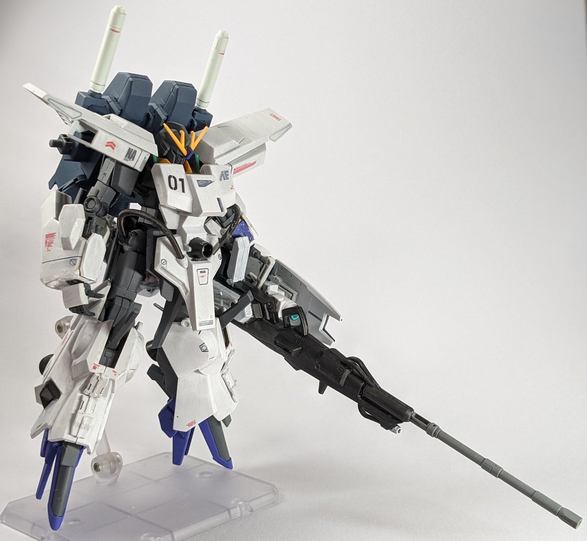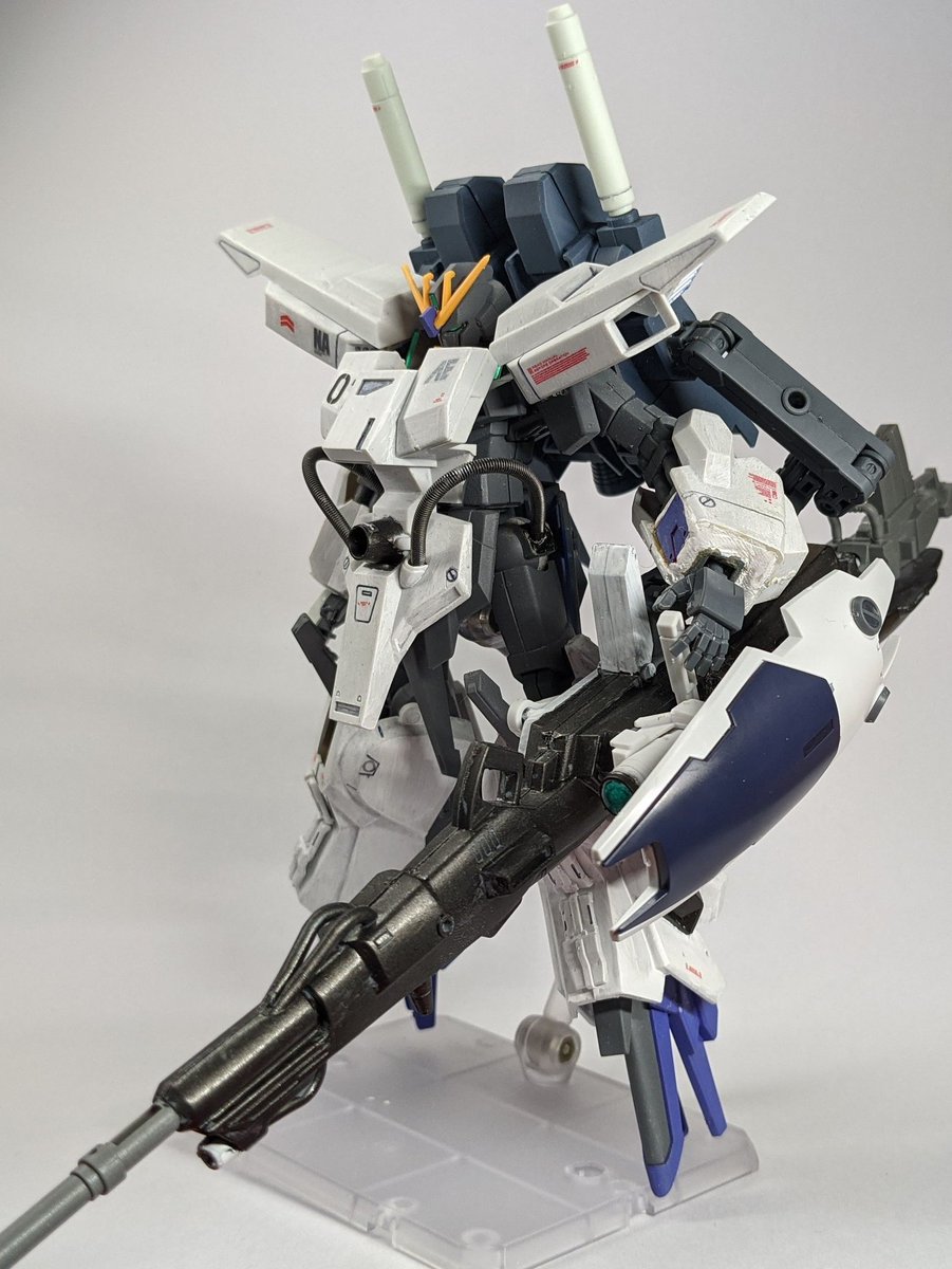 カラーリングは個人の趣味でガンダムMk-Vに寄せています そこから連想ゲームでエアーズ市の戦闘時にガンダムMk-Vが装備していたミサイルポッドをイメージしてMSGからマルチミサイルを引っ張ってきています #ガンプラ #水星の魔女 #ガンプラの画像を貼るとRTされると聞いて