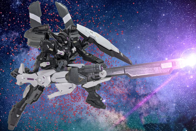 「フィンスターニス・ノア、目標を破壊するッ!」 デジラマもどきやってみた! 初期型の擬似太陽炉を搭載してる、っていう設定なので粒子は赤です! #ガンプラ #gunpla #ガンプラの画像を貼るとRTされると聞いて