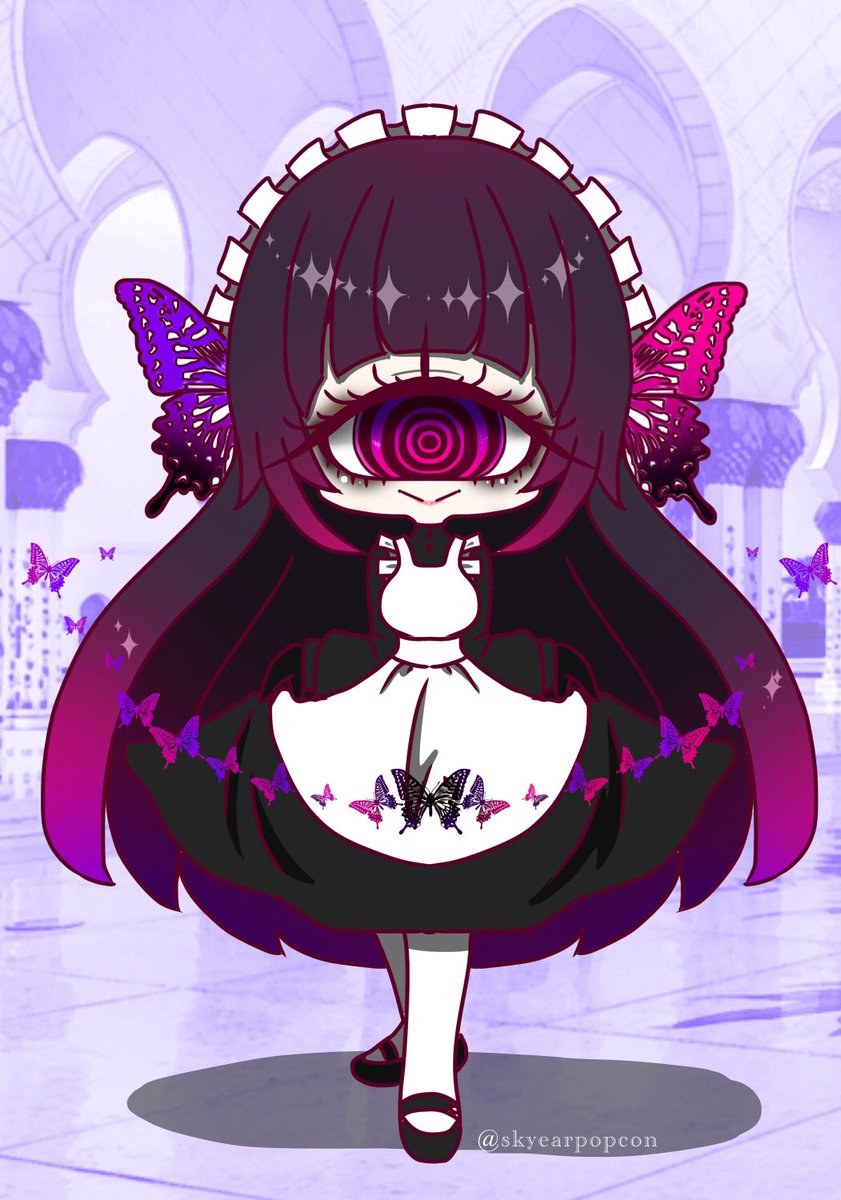 #仮単眼版深夜の真剣お絵描き60分一本勝負 久しぶりの参加でどうしても描きたかった🙏 お題は蝶とメイドです〜🙏