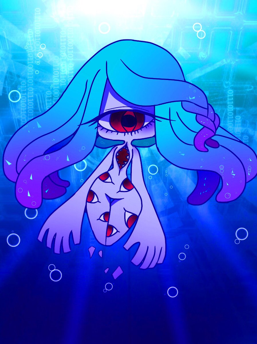 #仮単眼版深夜の真剣お絵描き60分一本勝負 お題は触手(と幾何学模様)です リハビリです…💦(色味どっちも好きなので2枚あげます)