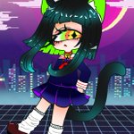 やっっっとこさ描けました!!!! アンケ結果 1:単眼 2:紫 3:🤕(包帯)×猫 #アンケで1位のアイディアでイラストを描く twitter.com/skyearpopcon/s…