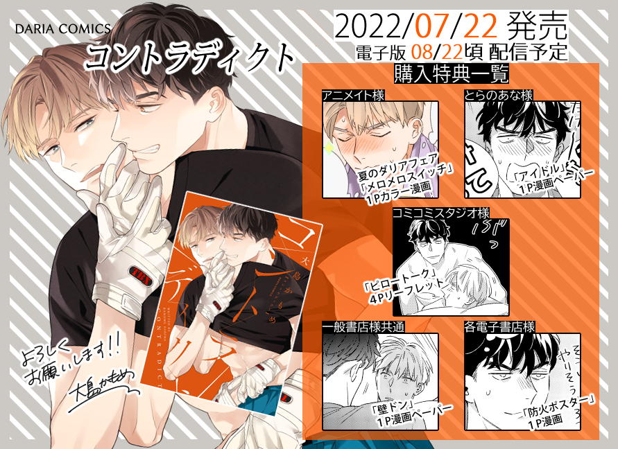 めっっっちゃ遅くなりましたが 👑 #BLアワード2023 👑 コミック部門にノミネートされた 「 #コントラディクト 」のキャラ紹介です これを機会に読んでくれる方が 増えたら嬉しいです! 俺様自信家×優秀クールの ライバル消防士BL よろしくお願いします👨🚒🧡👨🚒 投票⏩ blnews.chil-chil.net/newsDetail/331… twitter.com/skyfly_boy/sta…
