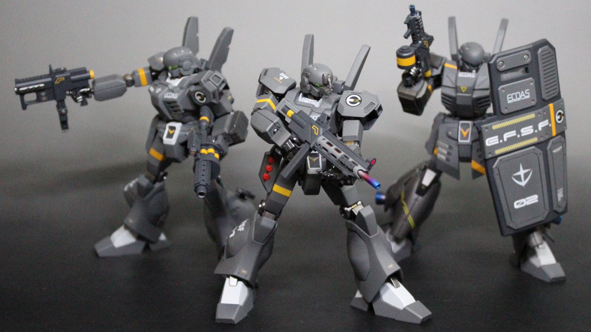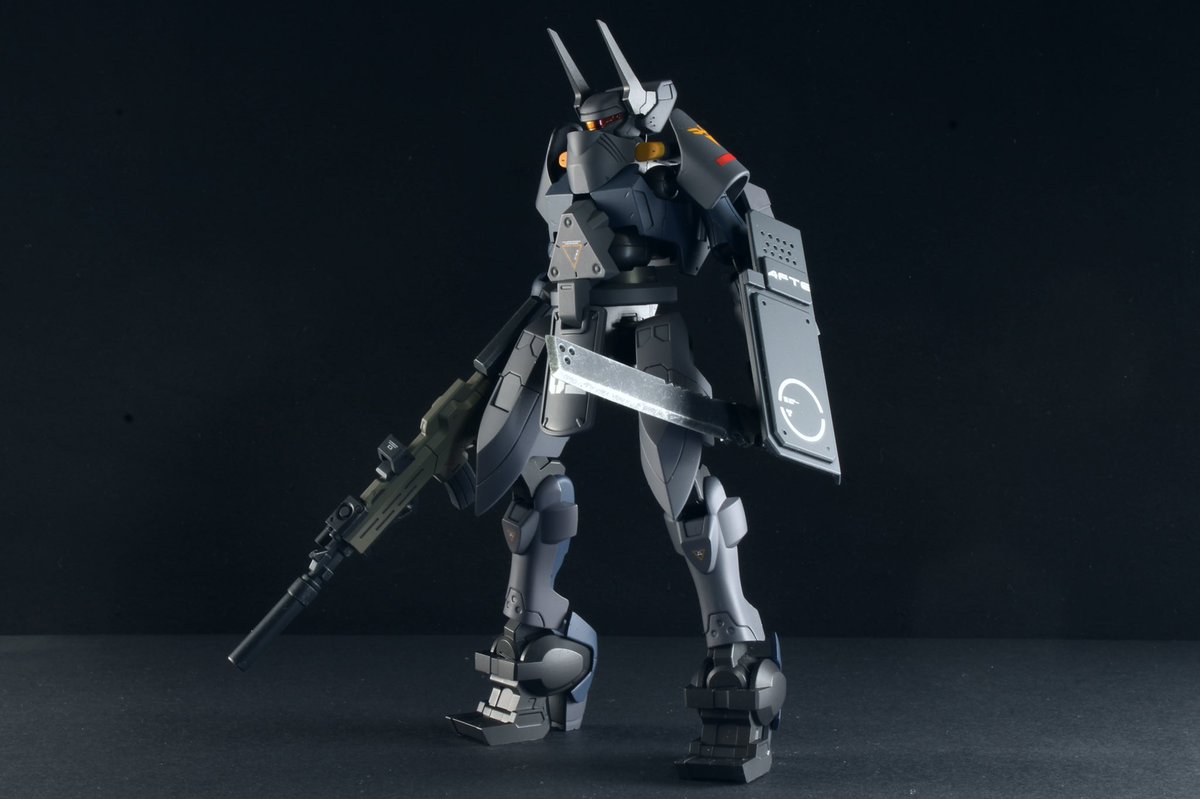 ニュウレン完成しました! シールド、ナタ、肩はスクラッチ 銃はアタッチメント盛々 腰と足の向き逆にしてます また3機小隊に出来ればなぁとか考えてたり…
