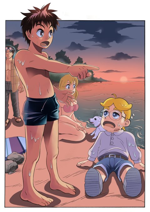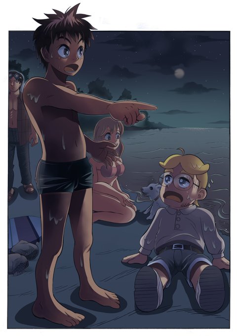 3 5 イラスト 夜の浜辺 海辺の少年達を描いてみました、 この年頃だけの青春みたいな。 #イラスト #少年 #ショタ 22/10/19 16:33
