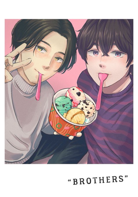 44 393 いまさらだけど、誕生日絵を2人一緒に描いてましたよっていう…やつです…✌️🙂🍨😯 22/01/04 00:40