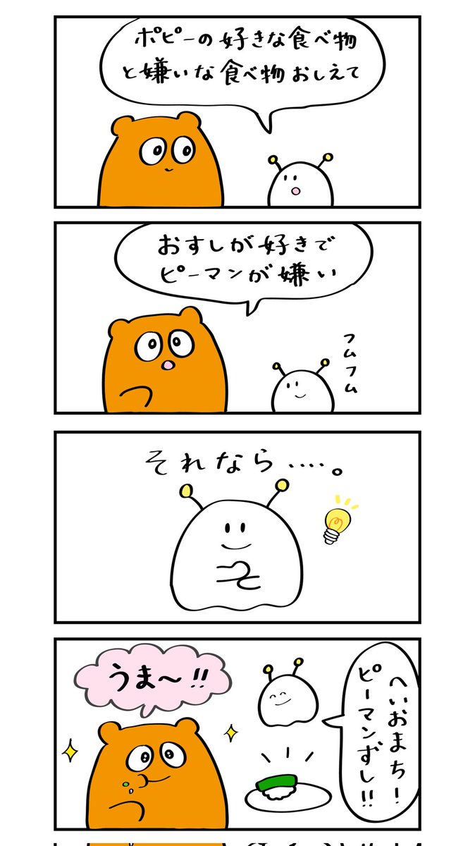 【4コマ漫画#2】 タイトル 「好き+嫌い=?」 #四コマ漫画 #ゆるキャラ #イラスト #イラスト好きな人と繋がりたい