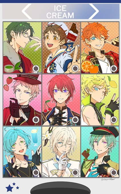 オフィスアイテムのやつ、明確なフレーバーが把握できてないのでそれっぽい味と髪色で決めまみた ユニットも被らないようにな