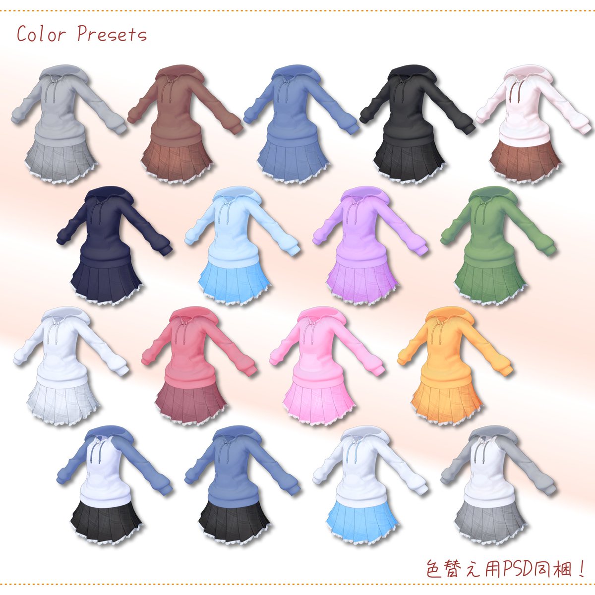 【販売告知】 アバター向け衣装の販売開始しました~! 【6アバター対応】のんびりミニスカ&パーカー | 翠妖精の絵具 sleetcatshop.booth.pm/items/3433010 #booth_pm #VRChat #翠妖精の絵具