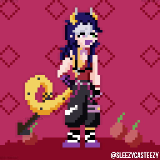 DAY 1 OF HISPANIC HERITAGE MONTH CHALLENGE @aracuya_ , a passionfruit demon! Who also gets their name from the spanish word for passionfruit (just remove one letter) #vtuber #pixelartist I'll be better tomorrow about not posting something last second! Got really busy today!