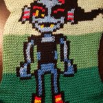 Getting ready to #crochet another #pixelart patch~ currently #LIVE on #twitch with some #undertale music, come hang out~ Twitch.tv/slendersword666