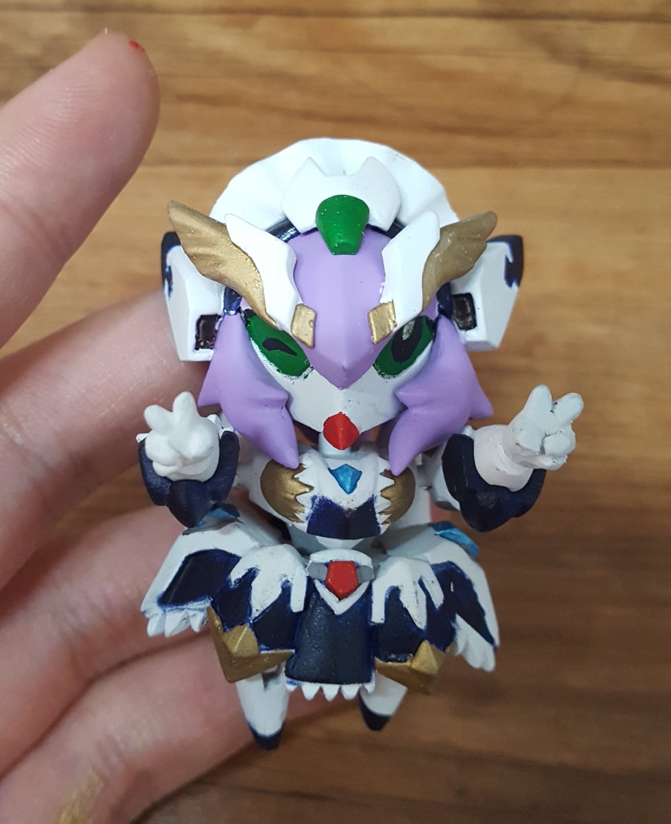 結構、時間がかかりましたけど、何とか塗装の参考になる資料も手に入れたのでやっと塗ってあげられました。^^ TFO2で購買した、まるちゃん工房(@kargaurio )さんのデフォルメバージョン白玉きつね(ポコ先生(@poco__)オリジナルキャラクター)です。 可愛くて良いですね。^^ #トレフェスオンライン2