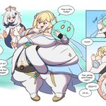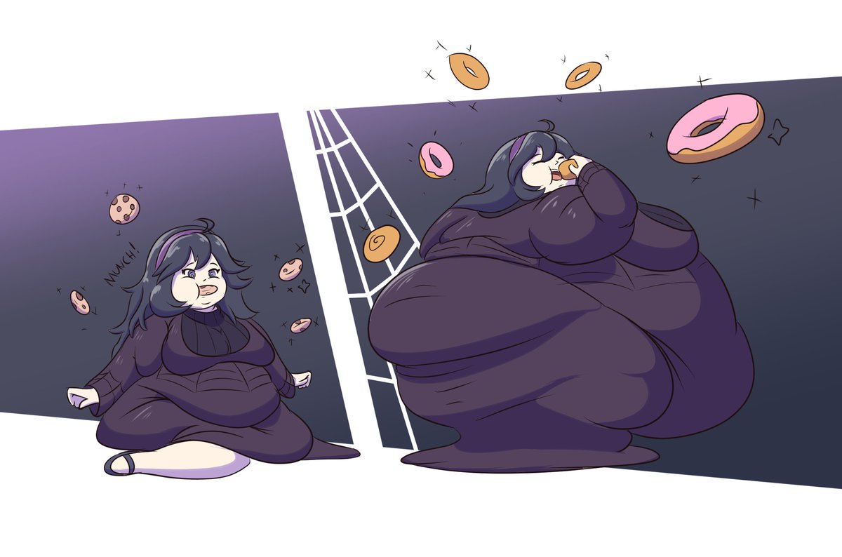 A commission for @cutehex1. Who seems to be magically being stuffed with a growing assortment of fattening foods in both caloric density and portion sizes. Though I think she is enjoying herself.