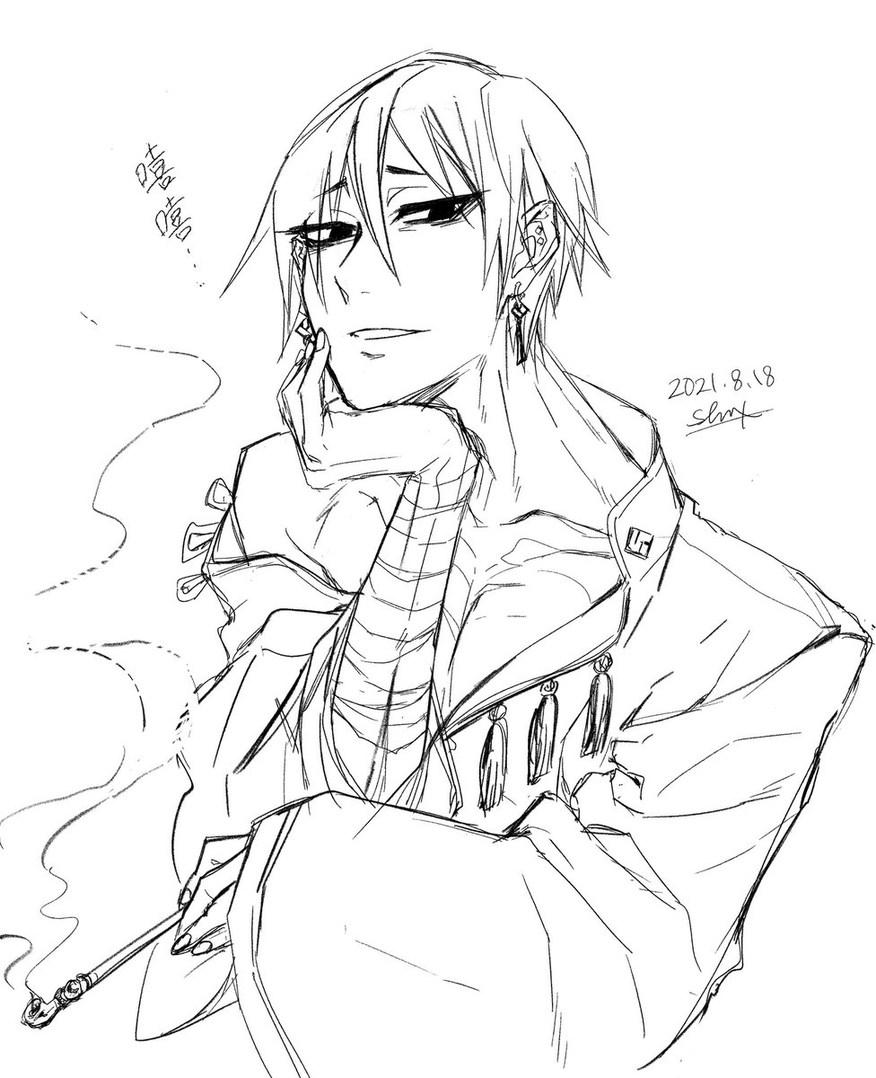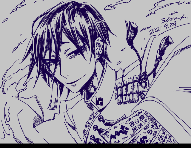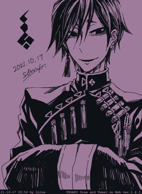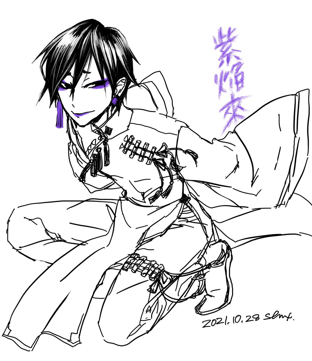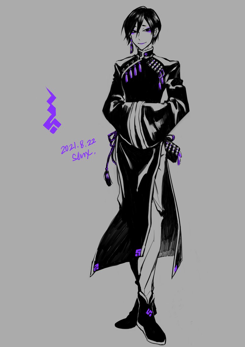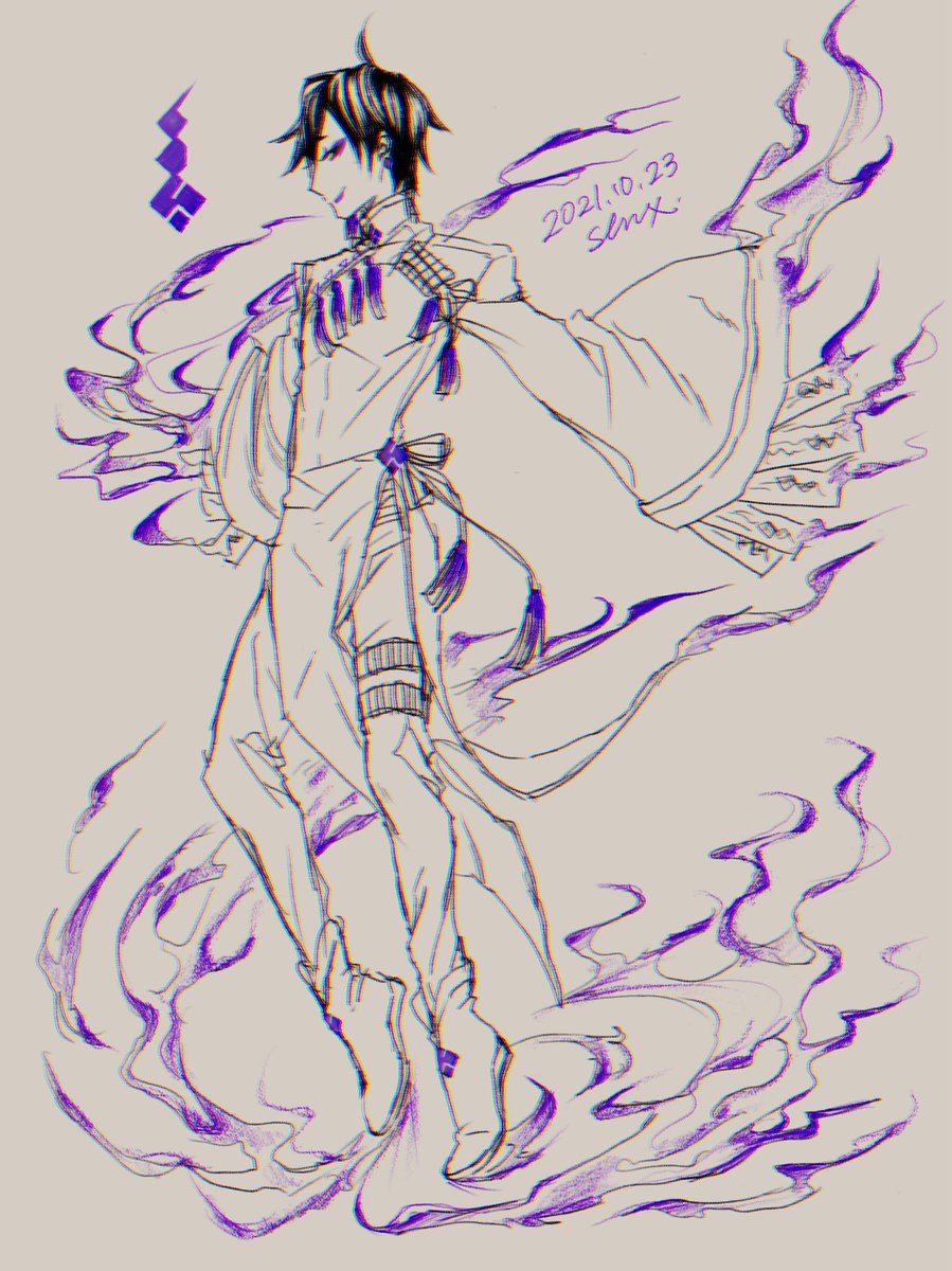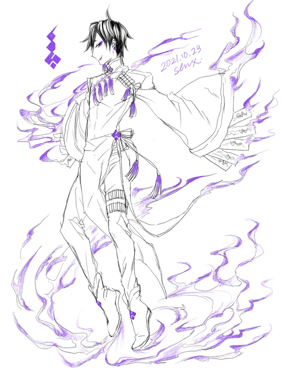 #今月描いた絵を晒そう #創作 #創作キャラ #オリジナル #オリキャラ #オリキャラは性癖の見本市 中華風のキャラに激沼。術式札を駆使し紫色の炎を操るという設定の創作キャラ。この子が今一番気に入ってる!ロゴも何気に気に入ってる。四角形と直線で表した焔の象徴。あと双子ちゃんも推しよ。