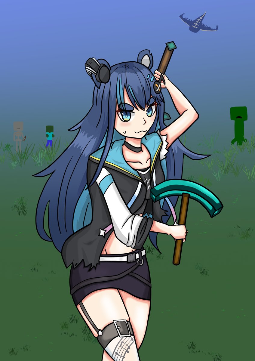 Uruka in Minecraft!! btw that Uruka holding sword with left hand in MC always bugs me😅 p.s. I pretty much used everything I learned and have to draw this, so I hope everyone likes it.😊 #urukart #UnbelievablyThiccBear