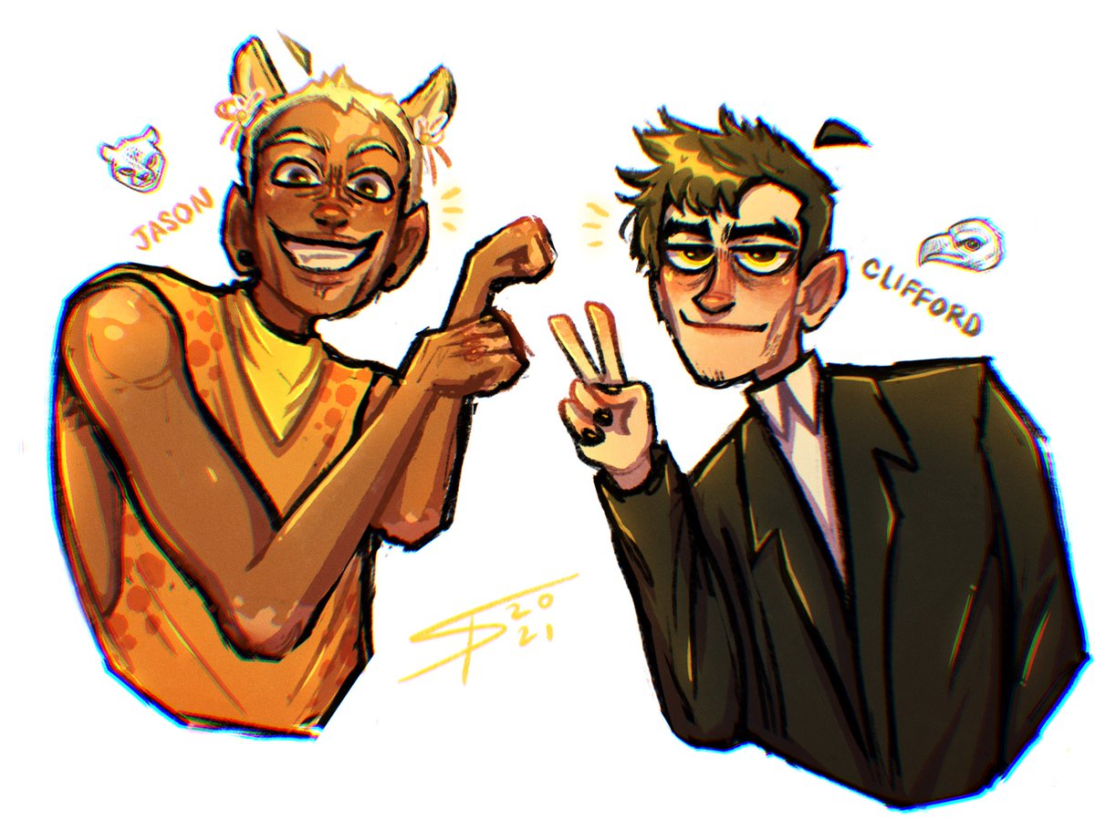 humanoid jason and clifford! 🐆 ✧ 🦅 they’re pros at kissing the homie goodnight what can i say #cliqueart #twentyonepilots @twentyonepilots