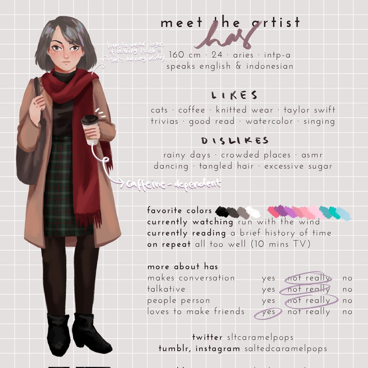 meet ✨me✨ ooooor... my persona, to be precise. i have always wanted to make my version of the #meettheartist but i was never confident about drawing myself nor was i confident about my so-called art style. i guess I'll just challenge myself this year😋 #artidn