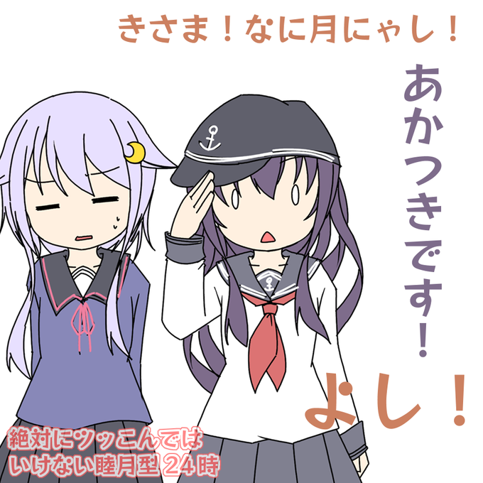 23 45 「我々の中に睦月型ではない者が紛れ込んだという情報を聞きつけたにゃし!そこで今からそのスパイをあぶりだしていく!」ヾ(。≡ω≡)ノシばたばた #艦これ 22/03/05 15:02
