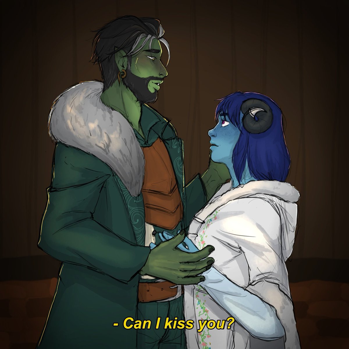 The choice of the moment absolutely WASN'T because I can't draw kiss to save my life #criticalrole #criticalrolefanart