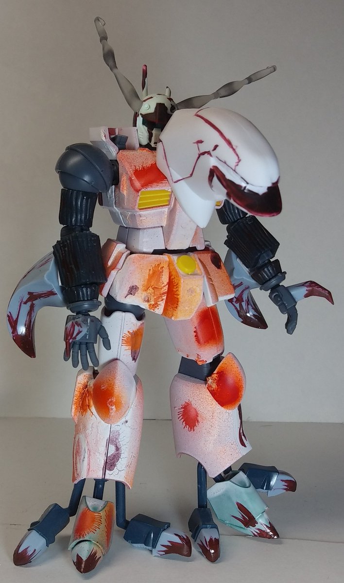 「ガンキャノンアマツ アグリー」 ガンキャノンアマツ本来の形態。 S²機関、サイコ·ジェネシスに加え魔のオーラの洗礼も受けており、異常な再生能力を誇る。 武器は諸刃之剣と血液凝固砲で、攻撃力は低い。 #ガンプラの画像貼るとRTされると聞いて #ガンプラはどんな自由な発想で作ってもいいんだ