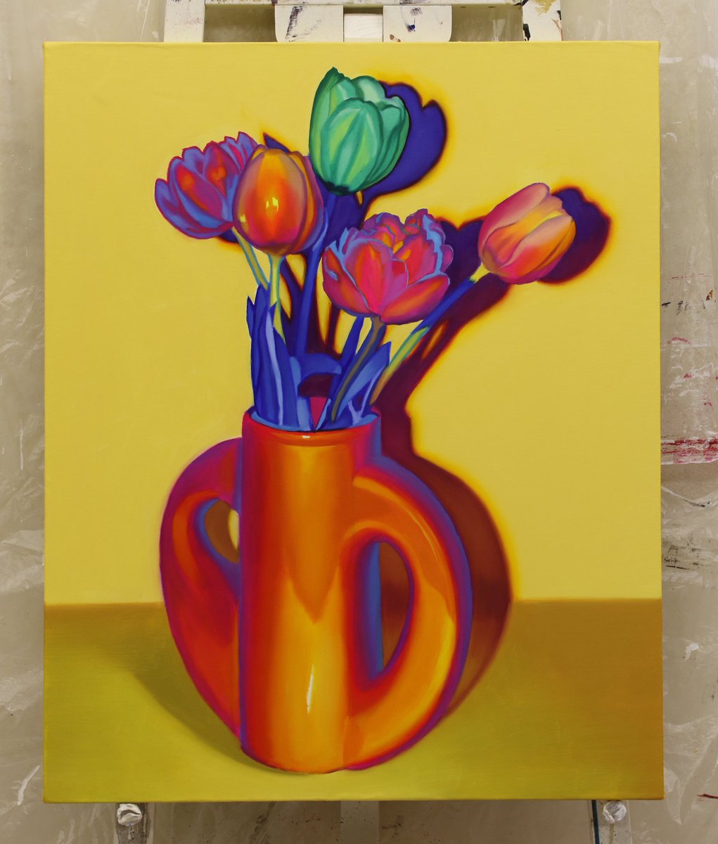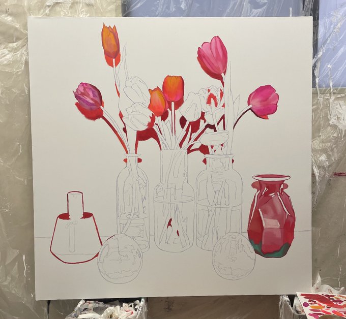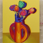 131 2719 新作の油絵です🏺 できていく過程が可愛かった 22/02/26 07:49