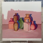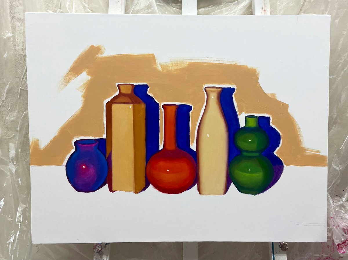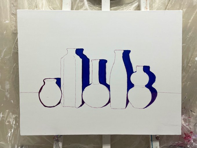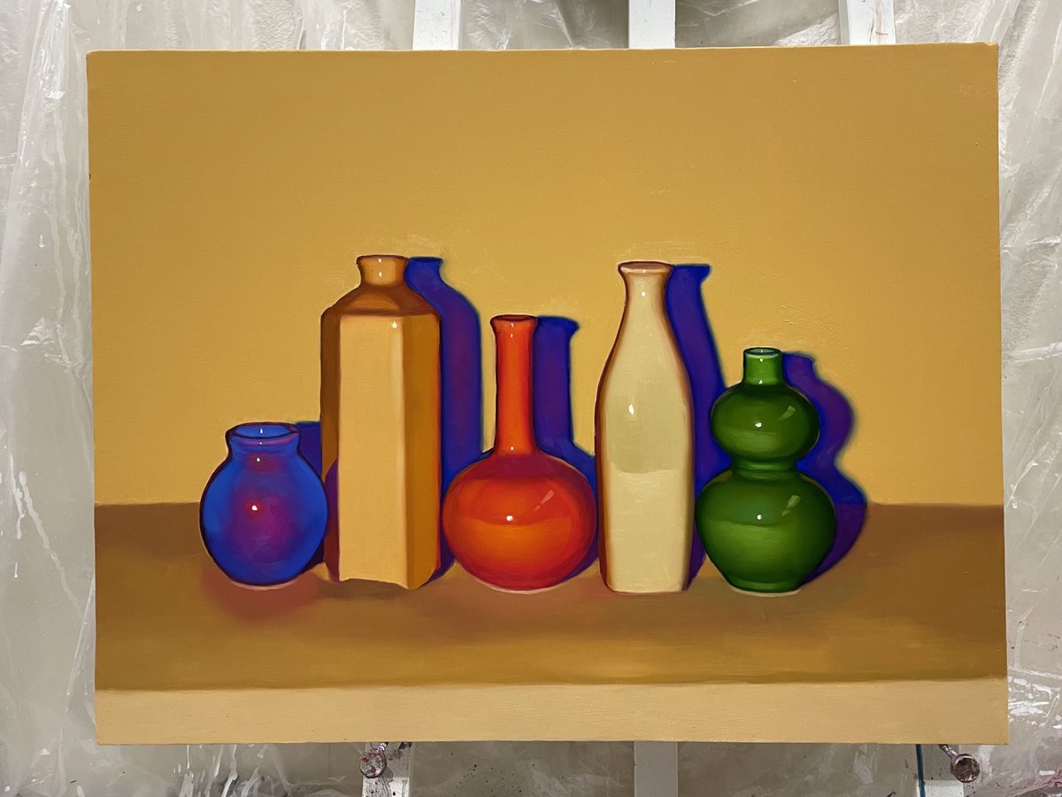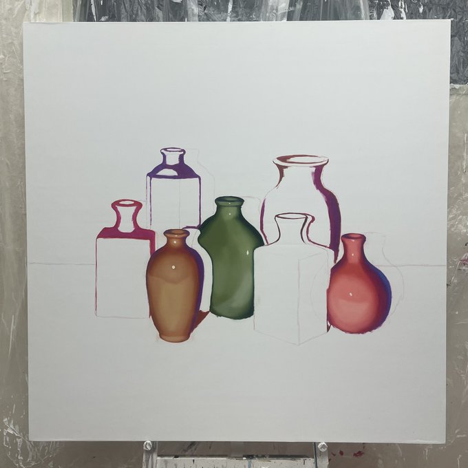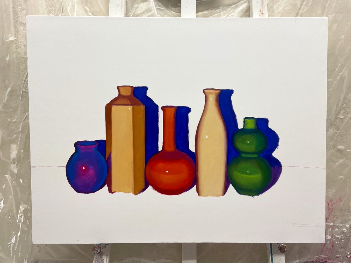 新作の油絵です🏺 できていく過程が可愛かった