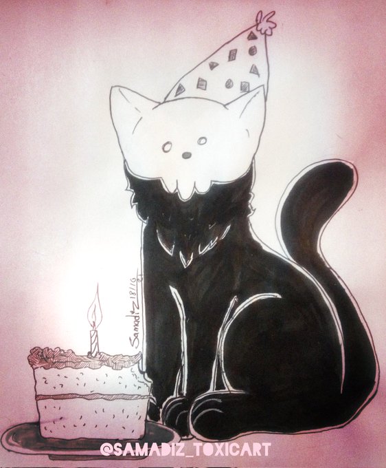 Día 18 "gato negro" El 18 fue mi cumpleaños por eso del porque el gato tiene un pastel #gogoxeontober #Inktober