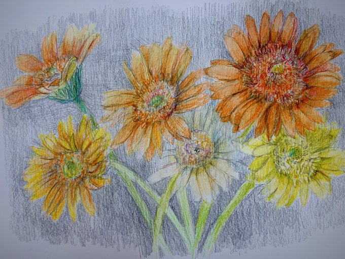 2 21 #ガーベラ #色鉛筆 #スケッチ 21/10/27 16:25
