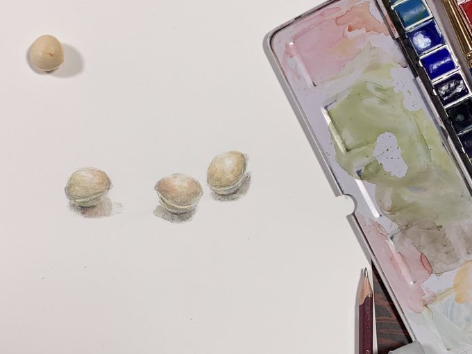 今日の #スケッチ #水彩 #水彩画 #りんご #洋梨