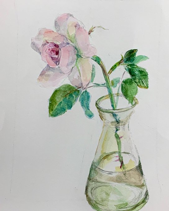 4 32 今朝咲いた#バラ #フロリバンダローズ #水彩画 #スケッチ うどん粉病治療中 22/05/14 20:58
