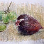 本日のモチーフ #いちじく #マスカット #色鉛筆 #スケッチ アリオ八尾2階 セブンカルチャーに展示中