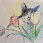 1 16 今日の #スケッチ #ネコ #色鉛筆 #チューリップ 23/01/28 22:47