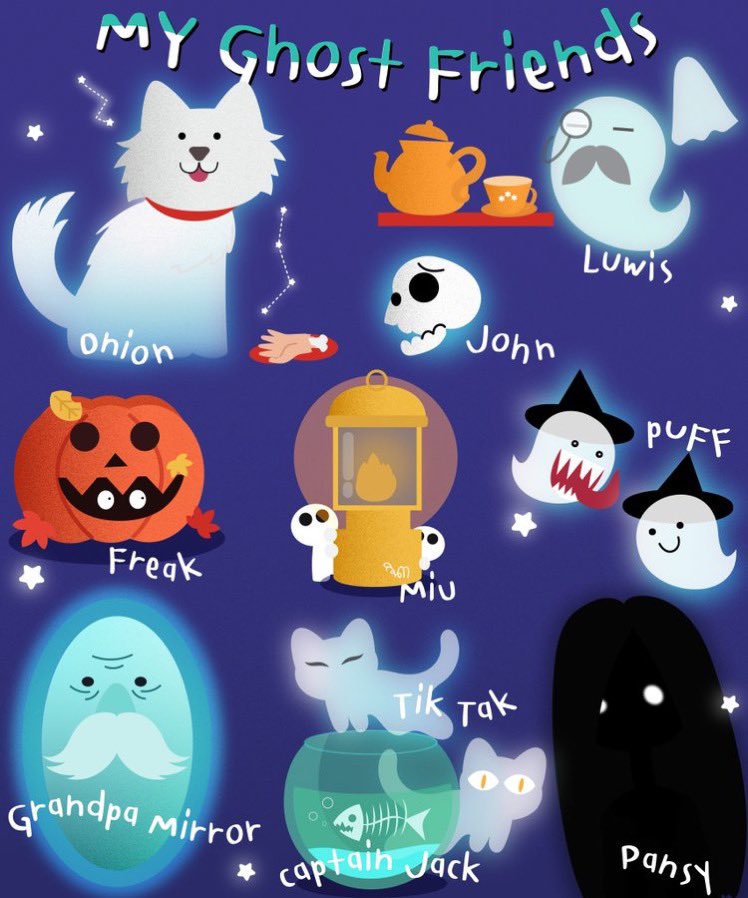 "อลิสเป็นผีตัวนึงที่อยู่กับคุณย่ามานาน ยัยนี่ชอบคิดว่าตัวเองเป็นเมด แต่ยัยนี่ก็ไม่ทำความสะอาดบ้านนะ จะทำแค่ริมน้ำชาหรือเสริฟขนมเท่านั้น งานอดิเรกคือชอบสะสมแมลง กับร้องเพลง ส่วนเรื่องเสียงนั้นฉันขอไม่ออกความเห็นแล้วกัน" #illustrationart #ArtistOnTwitter #vectorart #มาอวดโฮมุ้